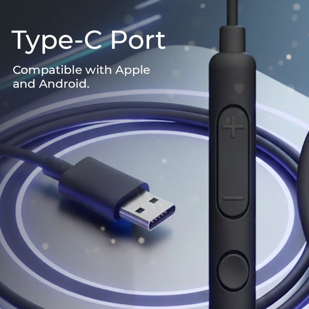 🔌 Type-C Wired Plug – Plug & play, no charging needed