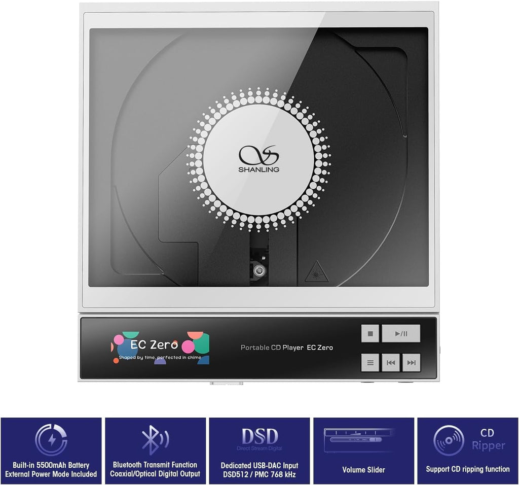 The Shanling EC Zero redefines what a modern portable CD player can be. Built for audiophiles who still cherish physical media, EC Zero combines precision CD playback, a premium AKM DAC, powerful balanced output, and versatile connectivity into one beautifully engineered device. Whether you're rediscovering your CD collection or integrating it into a modern Hi-Fi setup, EC Zero delivers authentic, lifelike sound wherever you go.